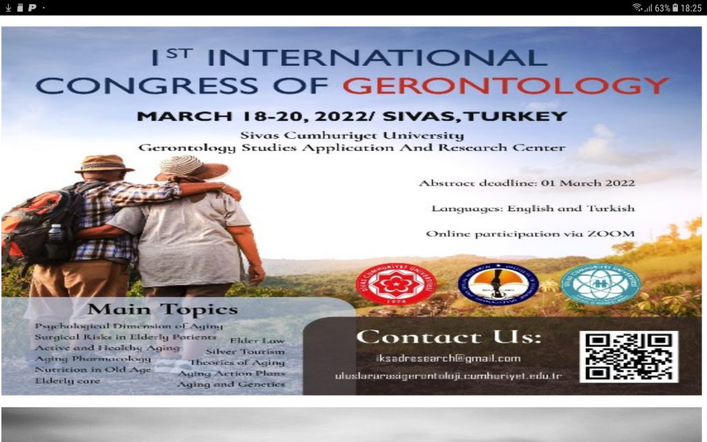 Congres Internațional de Gerontologie 18-20 martie 2022 Sivas Turcia