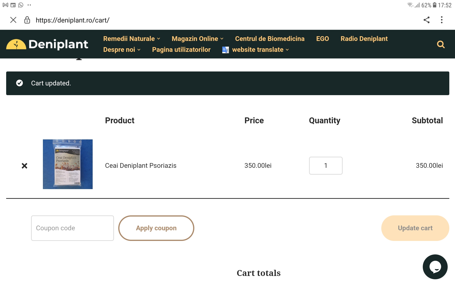 7. Dupa ce ai selectat produsul dorit, introduceti codul coupon in partea stanga, apoi apply cand verifici cosul de cumparaturi detalii aici: